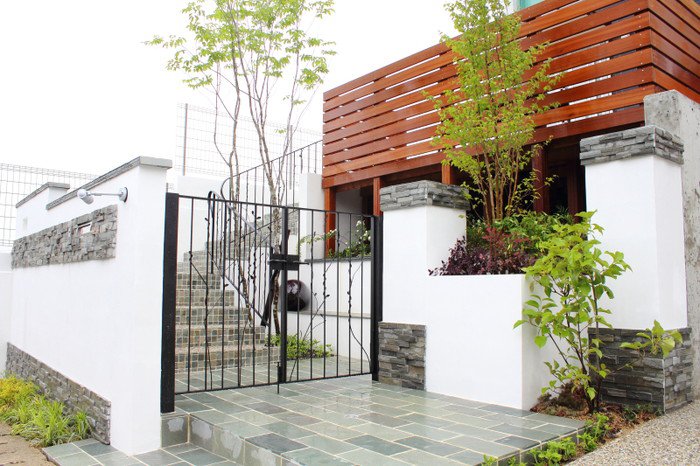モダンな建物に合う外構(フロントヤード)クラシカルなデザインの中にアイアンで可愛らしさを演出。