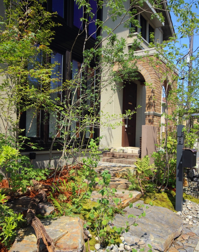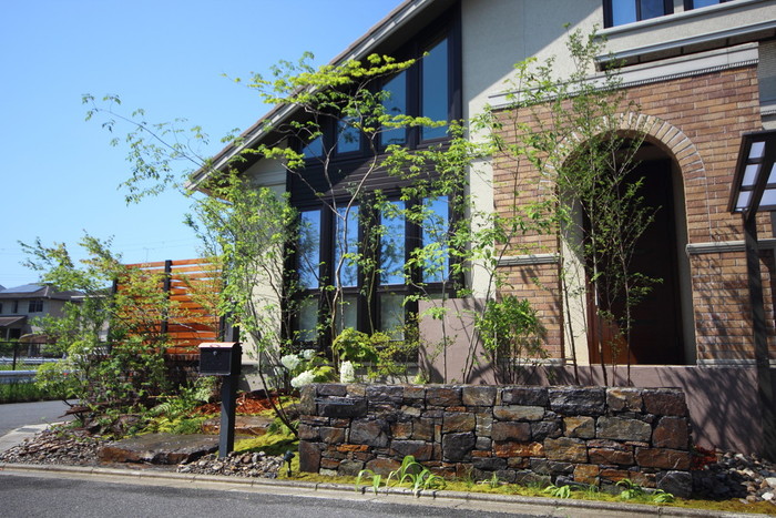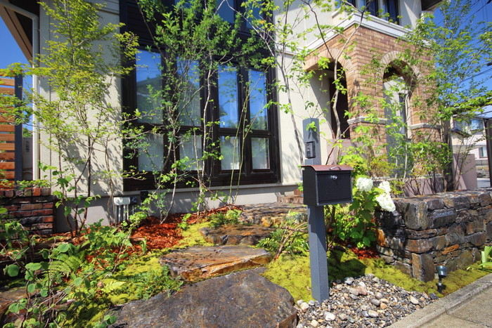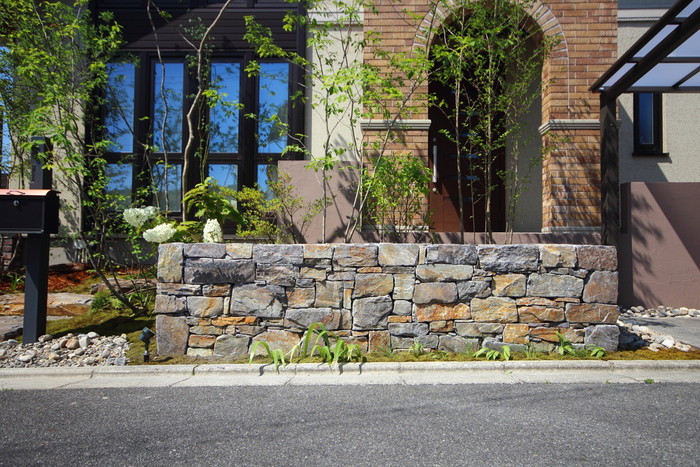 material&keyword:石積み,石組み,幡豆石,飛び石,鹿川石,景石,雑木,苔,樹木,庭,庭づくり,石張り,石貼り,フェンス,レンガ,オーバファイヤー