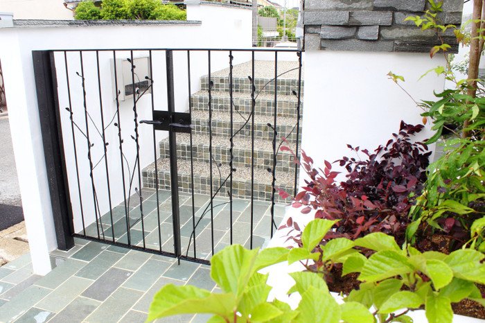 モダンな建物に合う外構(フロントヤード)クラシカルなデザインの中にアイアンで可愛らしさを演出。
