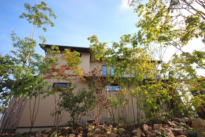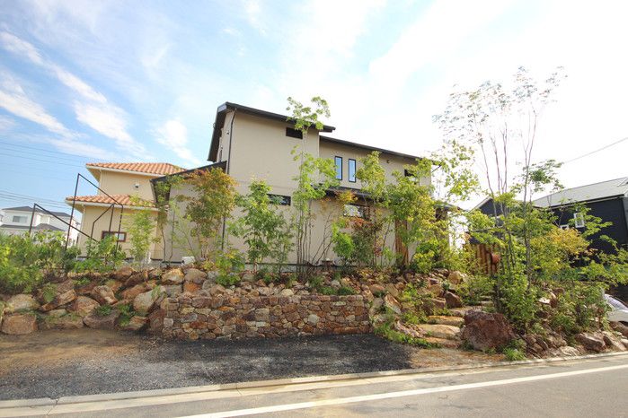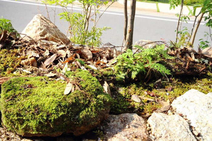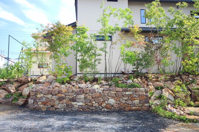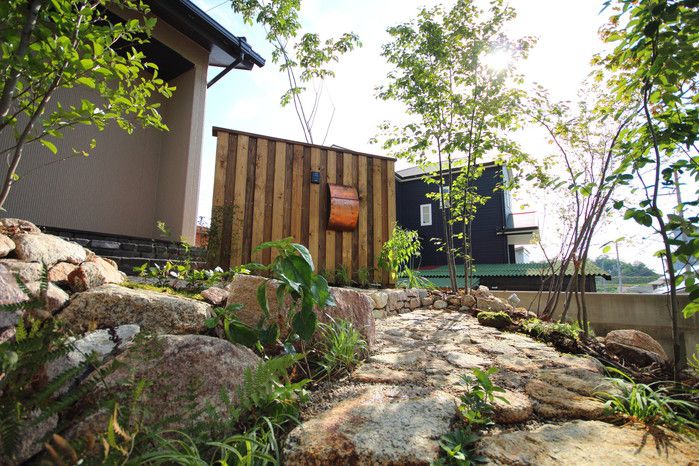 material&keyword:信楽石,甲賀石,階段石,石積み,石組み,傾斜地,法面,雑木,コッパー素材のポスト