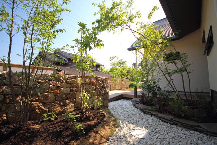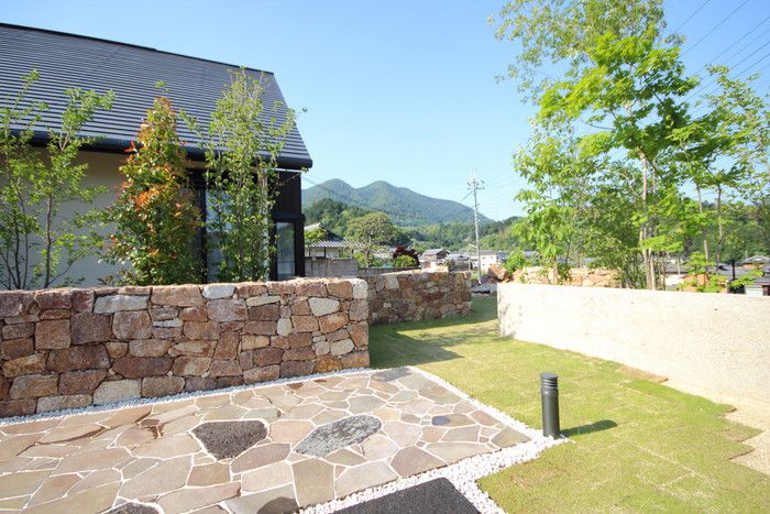 material&keyword:信楽石,甲賀石,飛び石,石積み,土壁,荒壁,小舞,漆喰,雑木,苔,鉄平石,ウッドデッキ,石貼り,アジアンリゾート,庵治石水たまり石