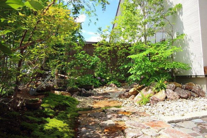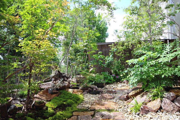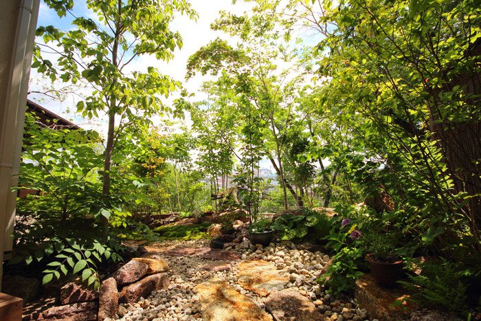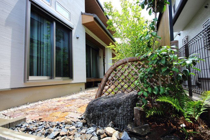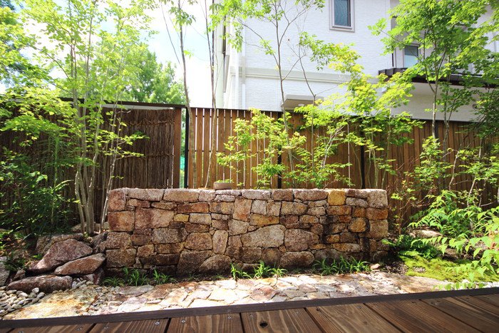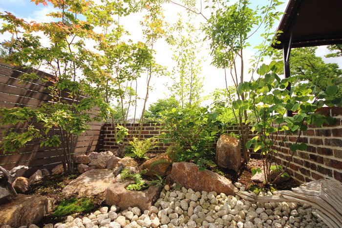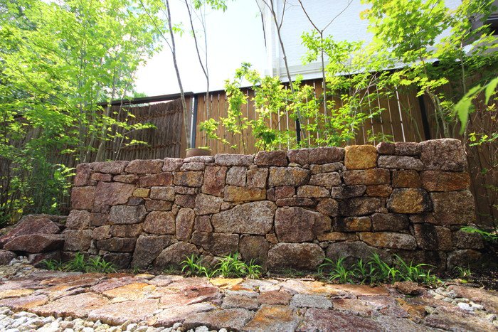material&keyword:石積み,信楽石,甲賀石,あられこぼし,萩の穂,穂垣,雑木,ゴロタ石,庵治石水たまり石,苔,山野草,テント屋根テラス, レンガ,エピソードブリック,オーバーファイヤー,坪庭,トラバーチン,石貼りテラス