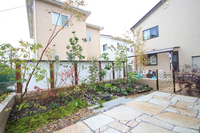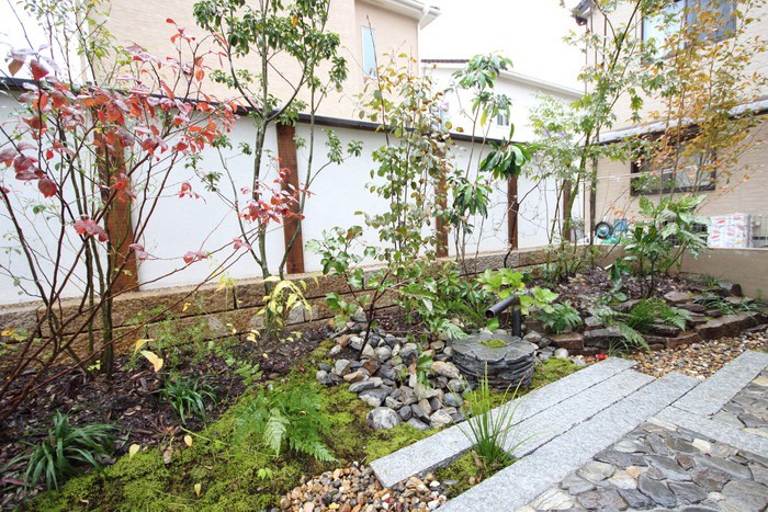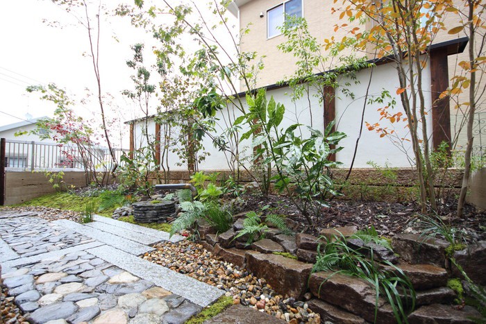 material&keyword:氣良石,気良石,飛び石,石積み,土壁,荒壁,小舞,漆喰,雑木,苔,蛭川御影,テラス,石貼り,川石,あられこぼし,水泉,銭鉢,三和土,土間たたき