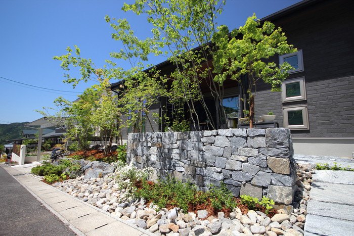 material&keyword:石積み,石組み,ヴィスタストーン白御影,ロックガーデン,天狗石,川石,景石,雑木,苔,樹木,庭,庭づくり,石張り,石貼り