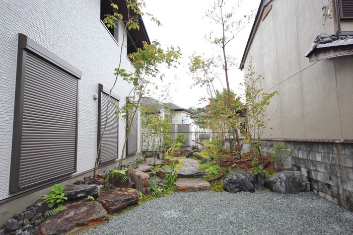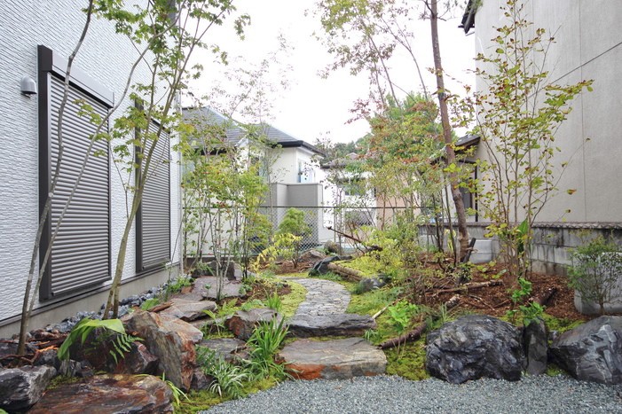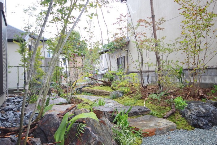 plants:サルスベルリ,アズキナシ,ガマズミ,,クロモジ,モミジ,コハウチワカエデ,エゴ,シャラ,シラカシ,ナツハゼ,ウグイスカズラ,ヒサカキ,アカマツ,ハイノキ,ジュンベリー,ツリバナ,アオダモ,ミツバツツジ,ヤマツツジ,アセビ,ギボウシ,フッキソウ,ヤブラン,ハラン,ツワブキ,アガパンサス,ドウダンツツジ,アジサイ,シャガ,トキワナルコユリ,リュウノヒゲ