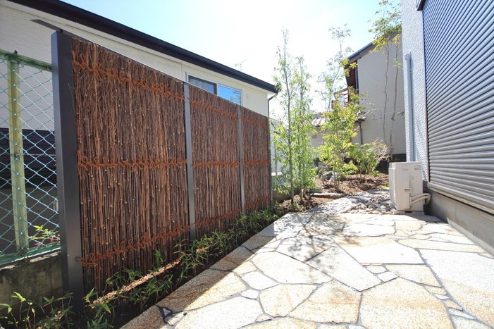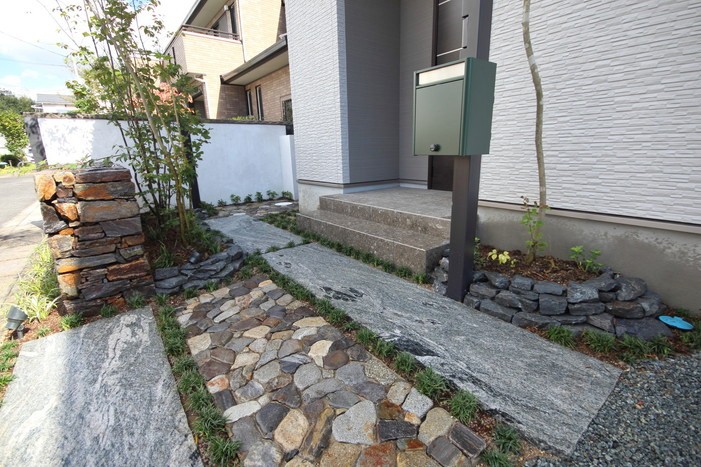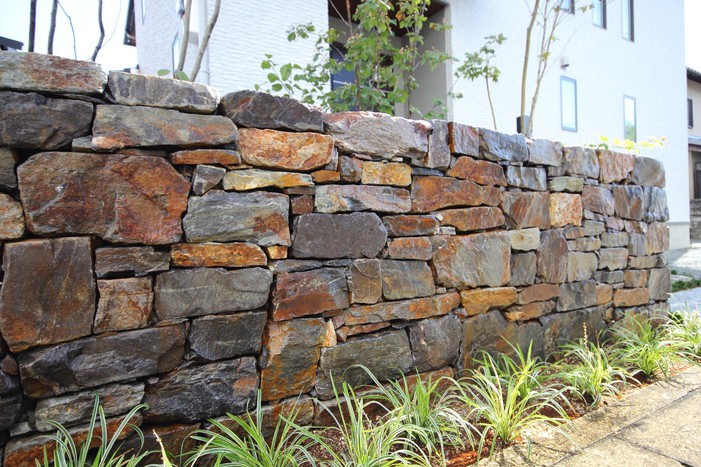 material&keyword:石積み,石組み,幡豆石,蛭川御影,ソフトーン,石張りテラス,ヴィスタストーン,景石,雑木,苔,樹木,庭,庭づくり,石張り,石貼り,穂垣,黒竹