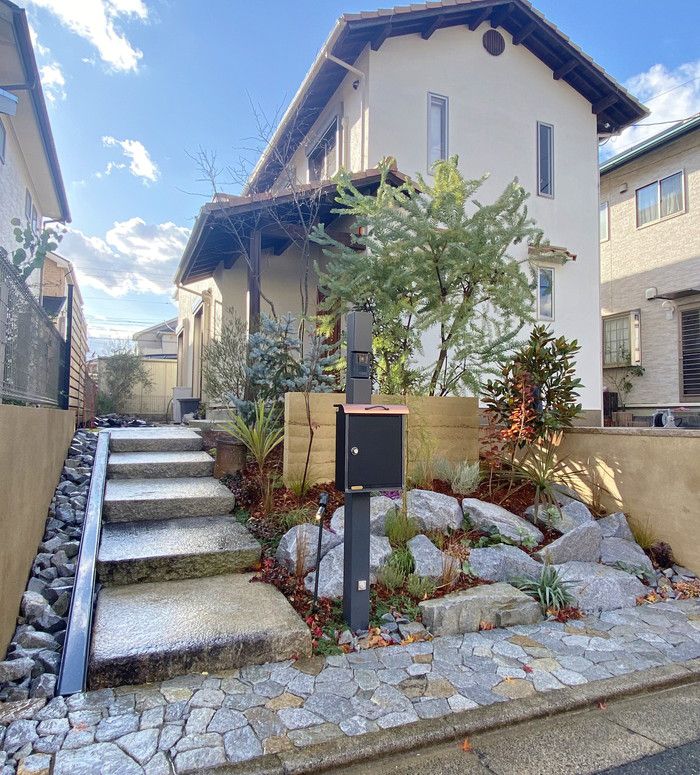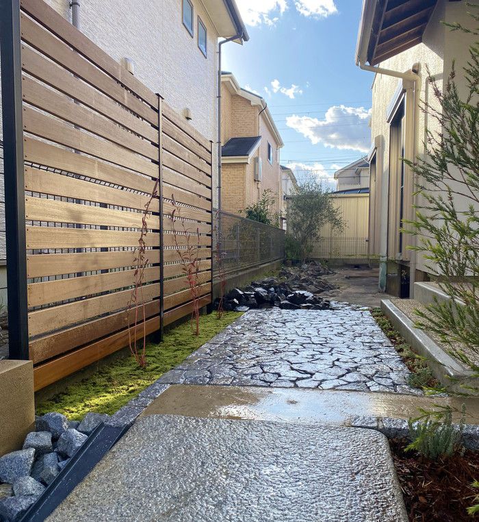 material&keyword:庵治石,三和土,版築,板石,景石,ロックガーデン,雑木,樹木,庭,庭づくり,石張り,石貼り,ウッドフェンス,板塀