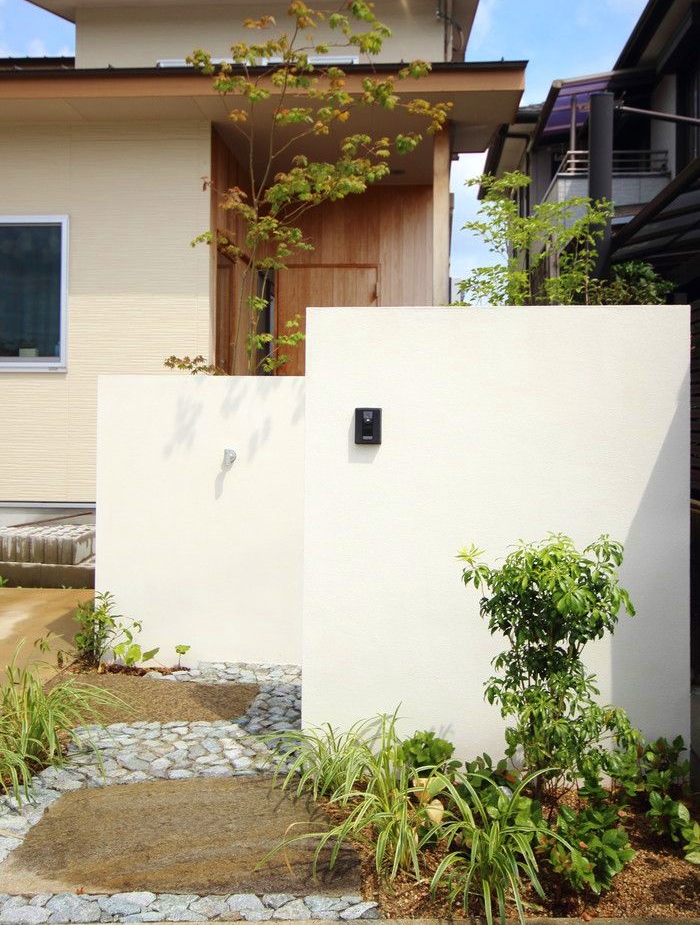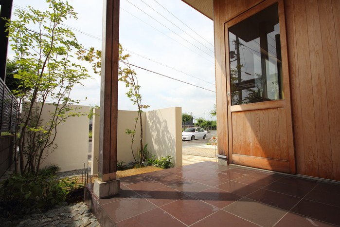 植物に囲まれた通路を楽しむフロントヤード。玄関側から眺めるとまた違った表情を見せるグリーンが広がります。